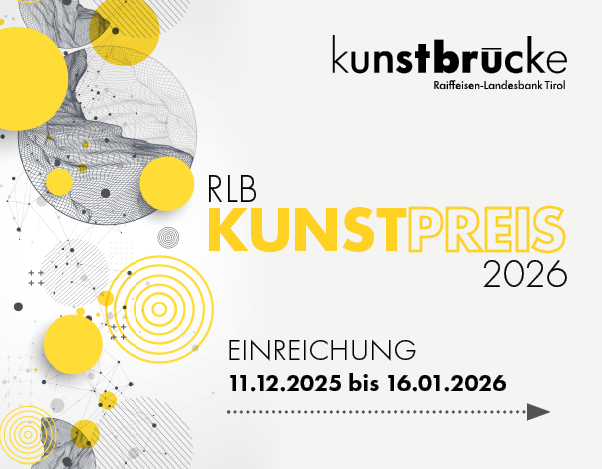 Die Raiffeisen-Landesbank Tirol AG schreibt zum zwölften Mal den RLB Kunstpreis für bildende Kunst aus – einer der höchstdotierten und renommiertesten Kunstpreise des Landes. Die Online-Einreichung läuft von 11. Dezember 2025 bis 16. Jänner 2026 unter www.kunstbruecke.at.